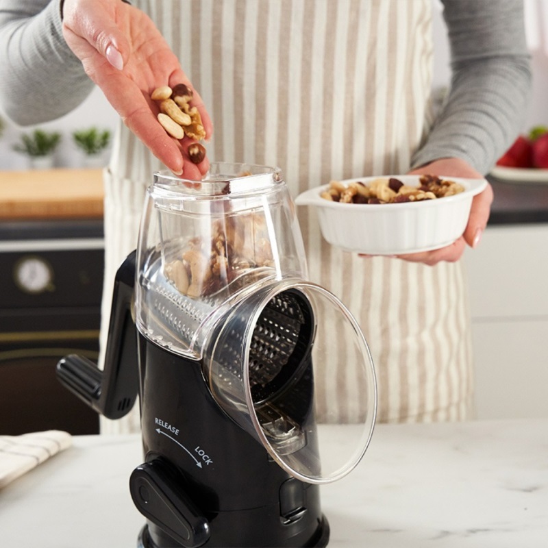 Peynir, findik ve çikolatalari kaba granül veya ince toz haline getirmeyi ve rendelemeyi seçebilirsiniz.