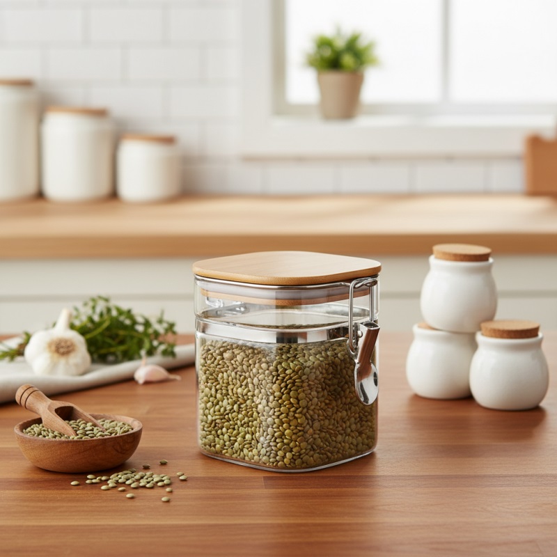 • Kapakli cam gida saklama kavanozu, kurabiye, seker, un, pirinç, fasulye, baharat, tahil vb. saklamak için mükemmeldir.