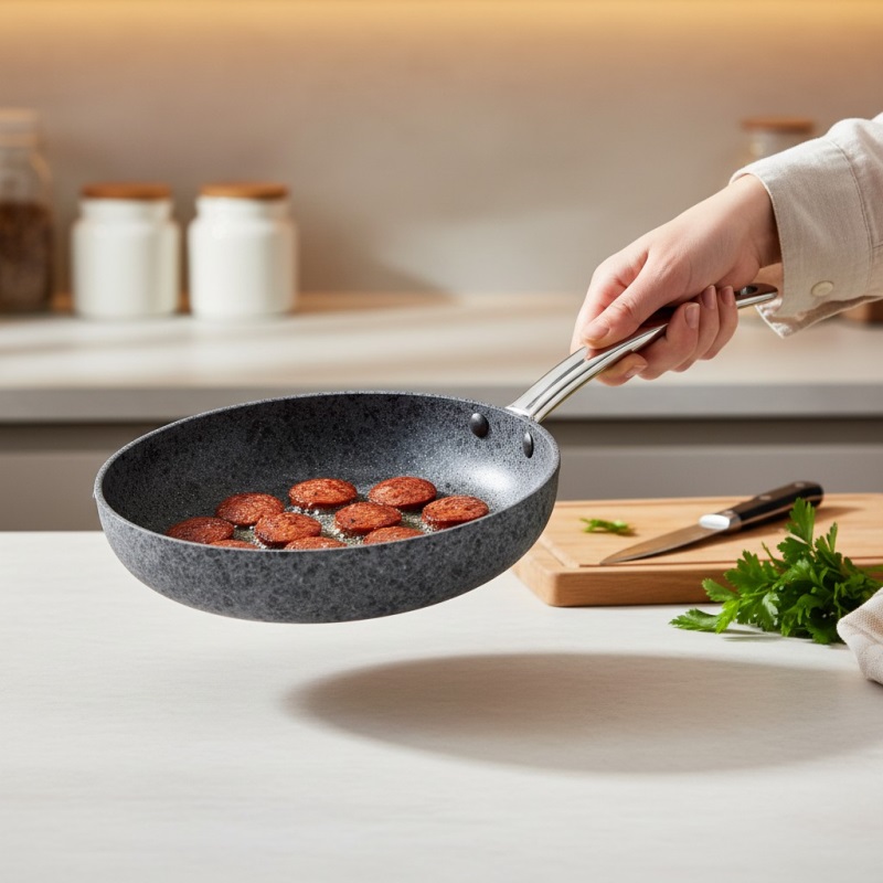 • Benzersiz atomik yapiya sahip PEEK KAPLAMA, çizilmeye karsi ultra dayaniklidir—metal mutfak gereçleriyle bile rahatça kullanilabilir!