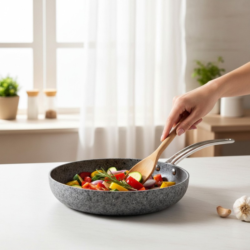 • Benzersiz atomik yapiya sahip PEEK KAPLAMA, çizilmeye karsi ultra dayaniklidir—metal mutfak gereçleriyle bile rahatça kullanilabilir!