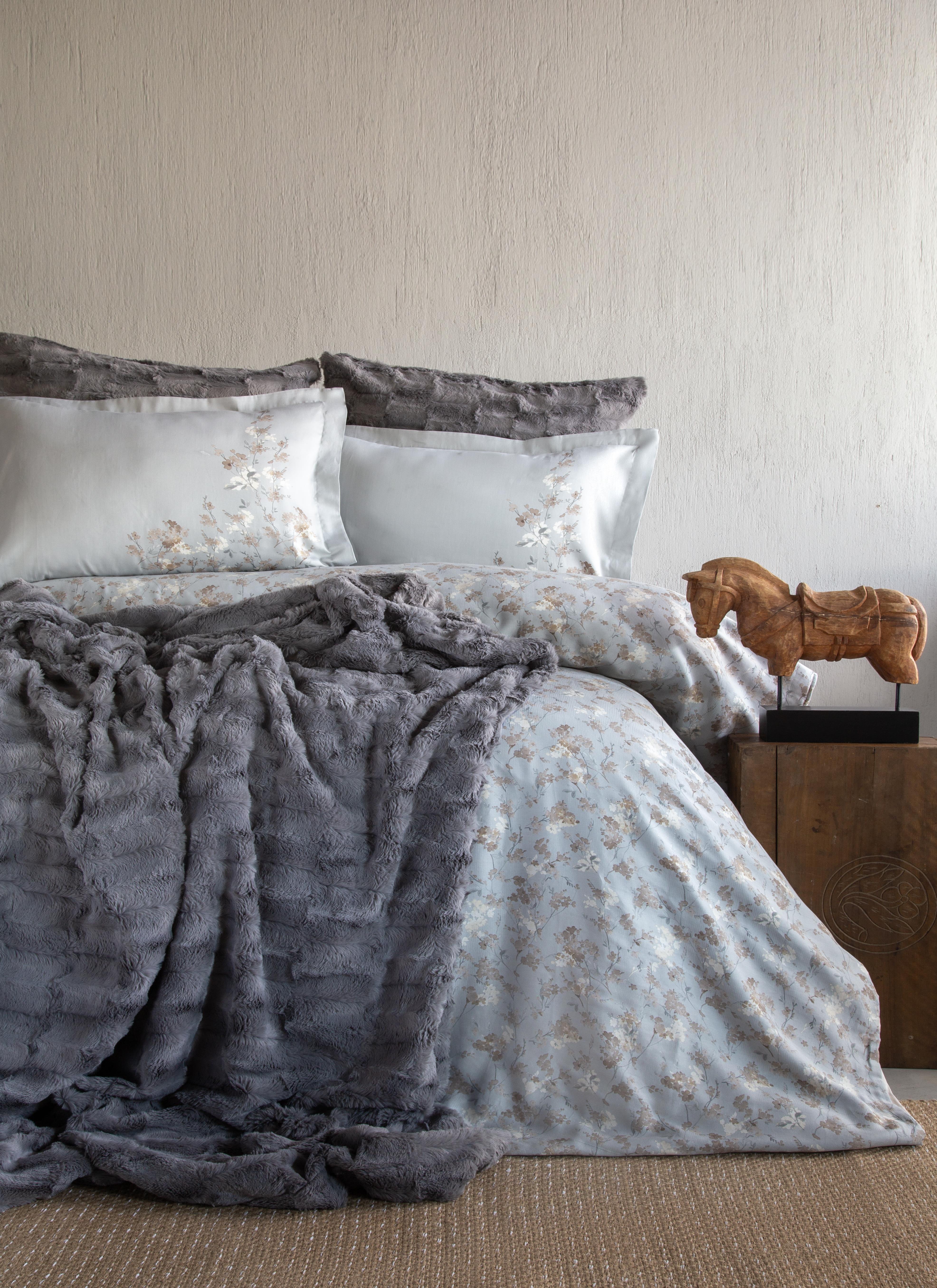 Çift Kişilik Paolina Gri Yatak Örtülü Nevresim Set