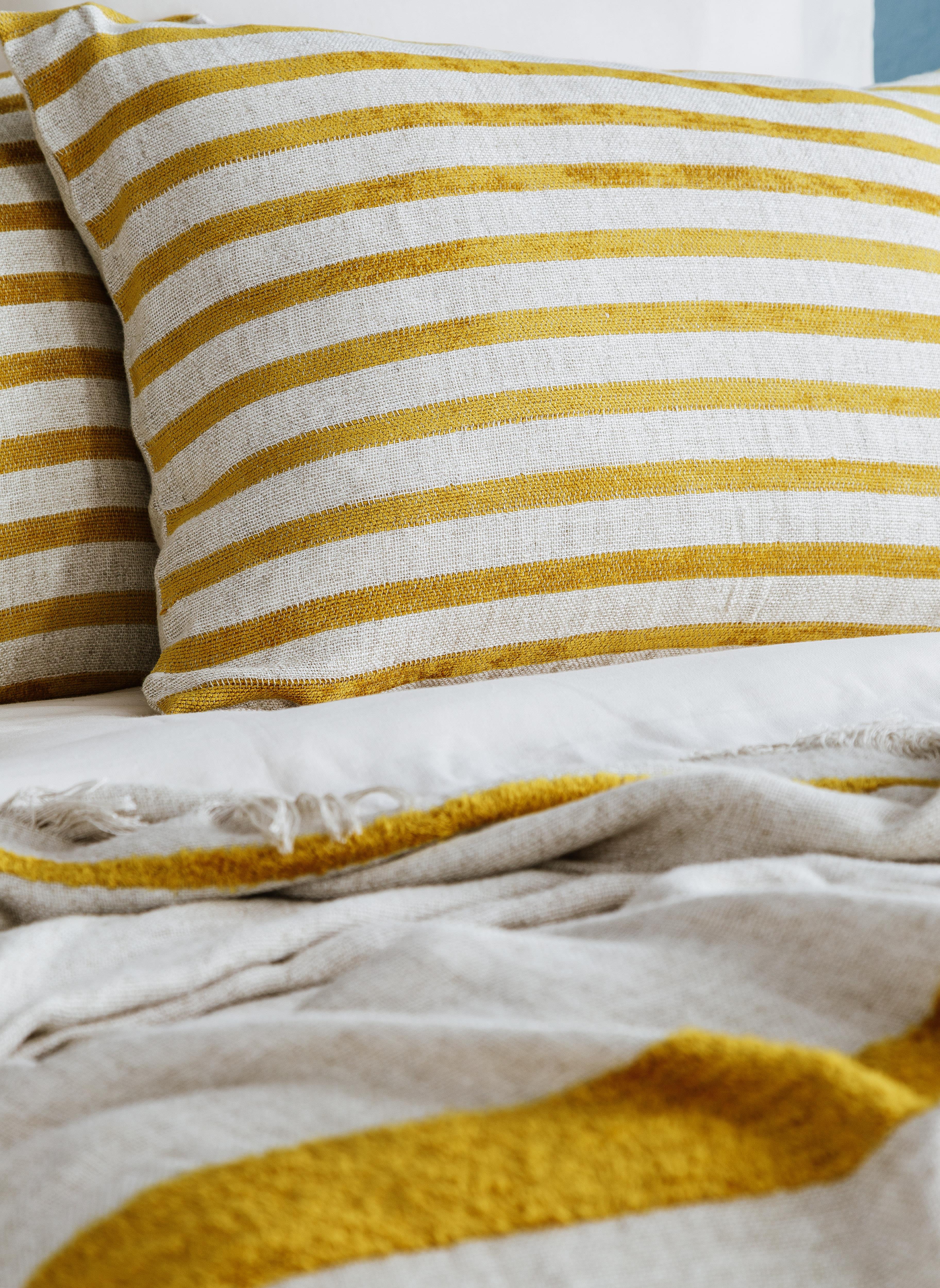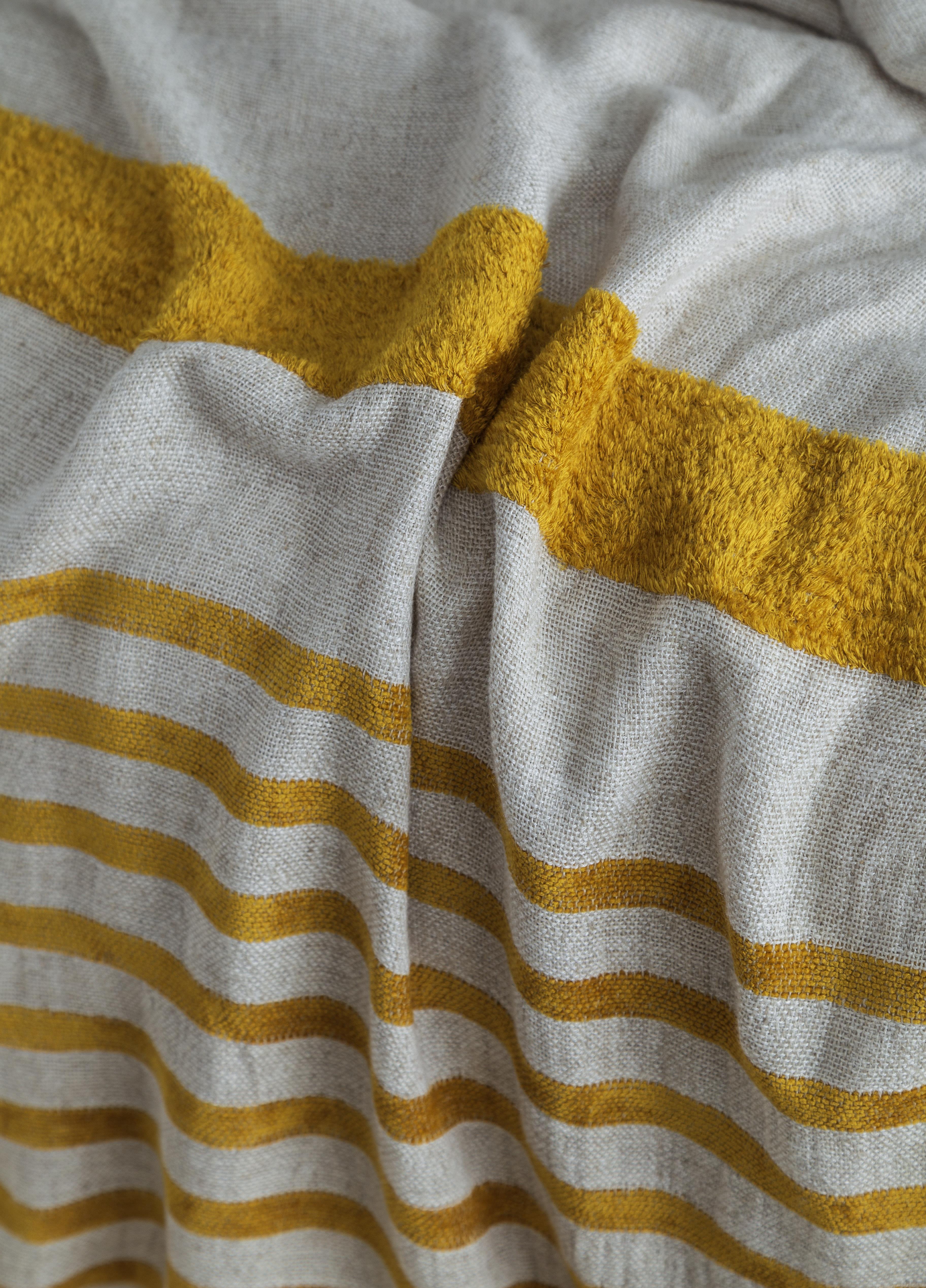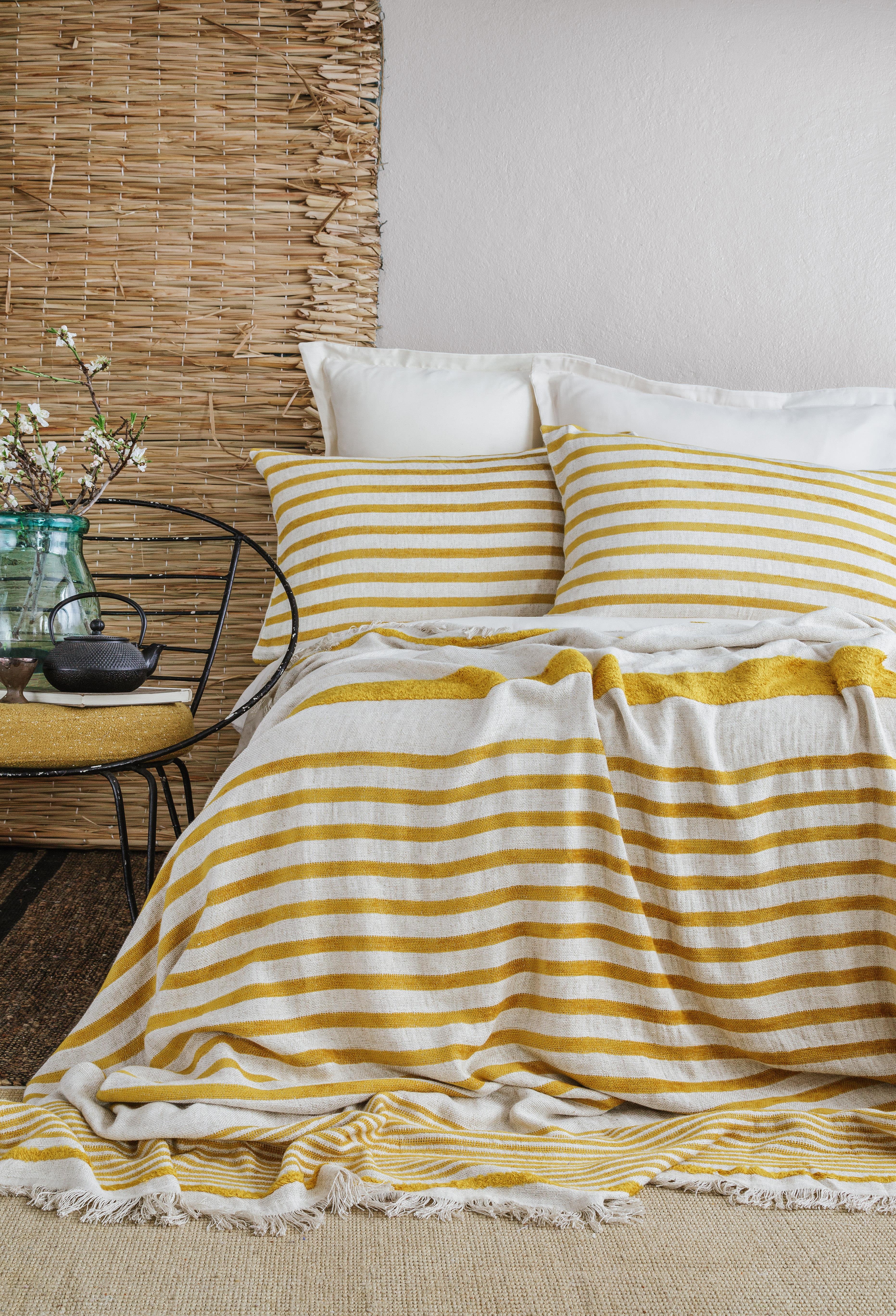Çift Kişilik Brulee Safran Keten Yatak Örtüsü Seti