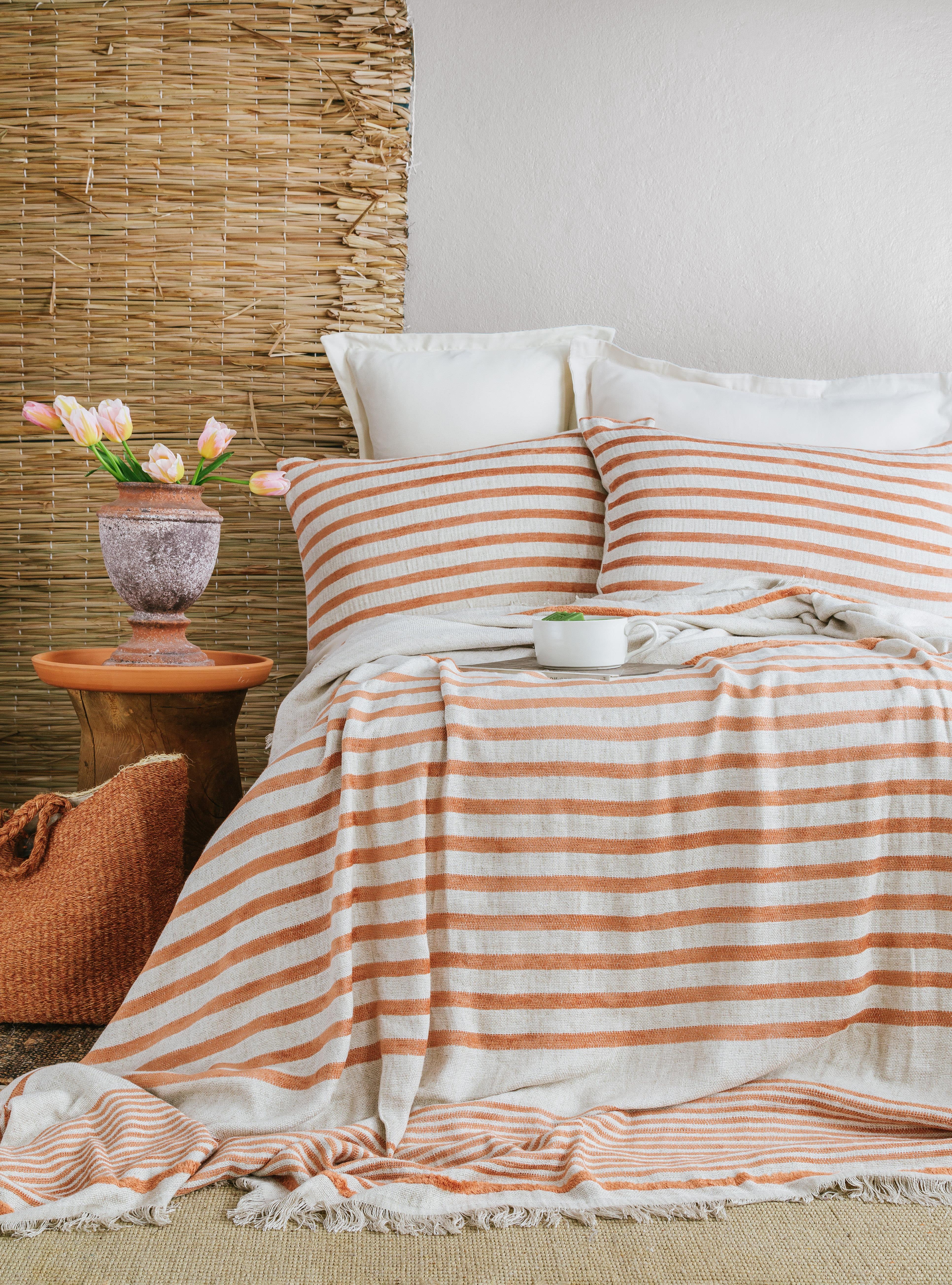 Çift Kişilik Brulee Terra Keten Yatak Örtüsü Seti