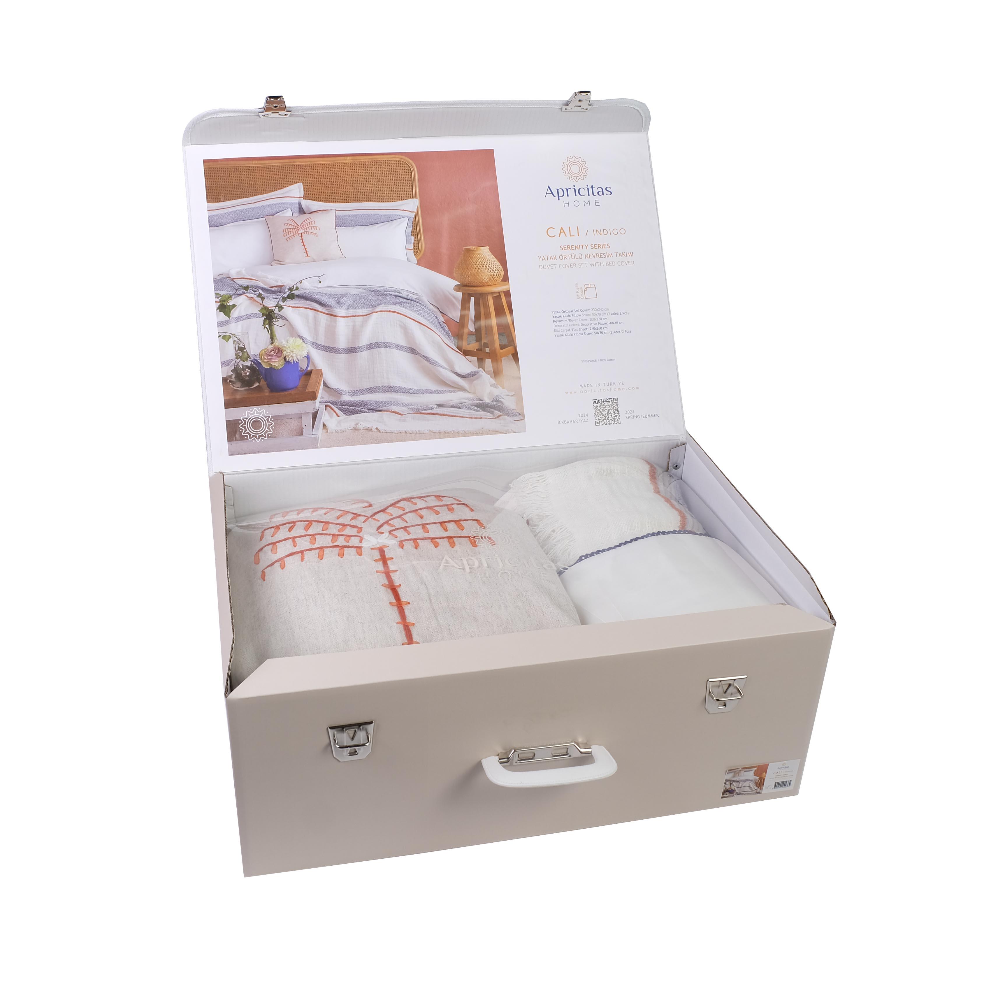 Çift Kişilik Cali İndigo Pamuk Yatak Örtüsü Nevresim Seti
