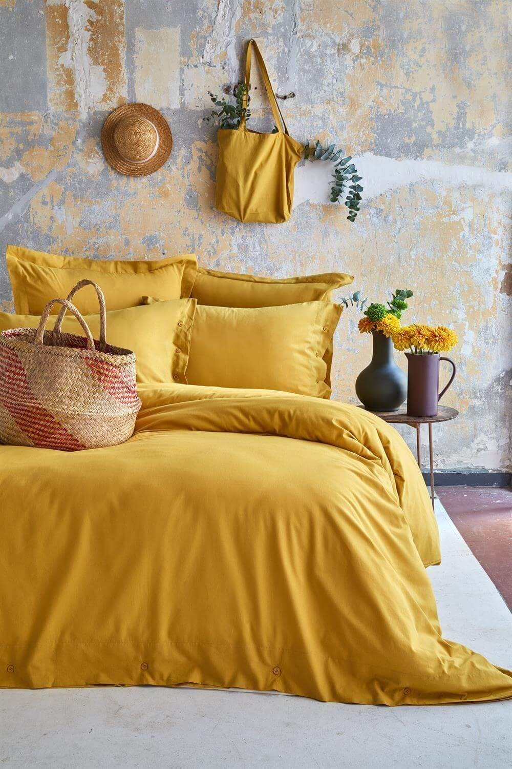 Çift Kişilik Düz Nevresim Takımı Essential Hardal