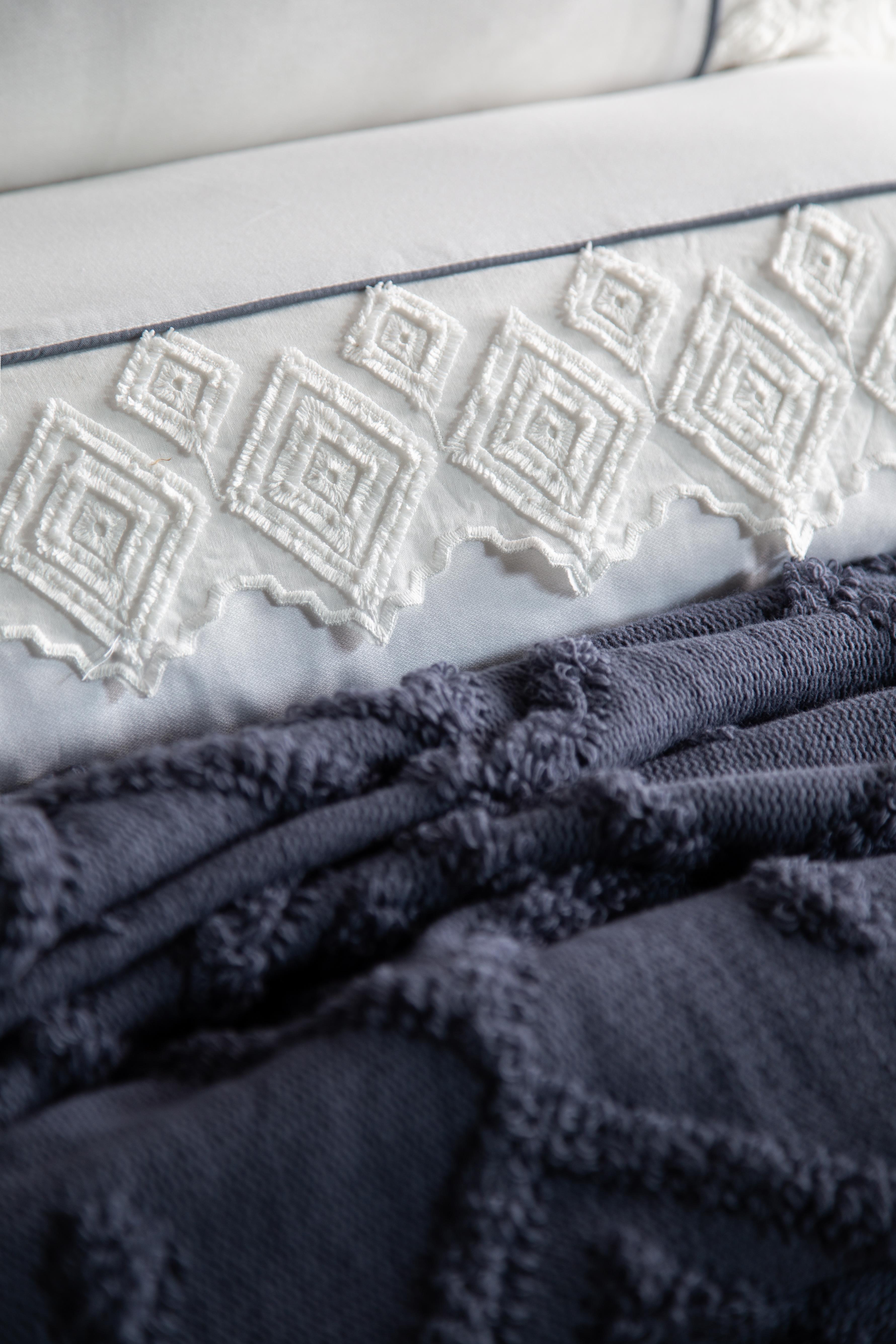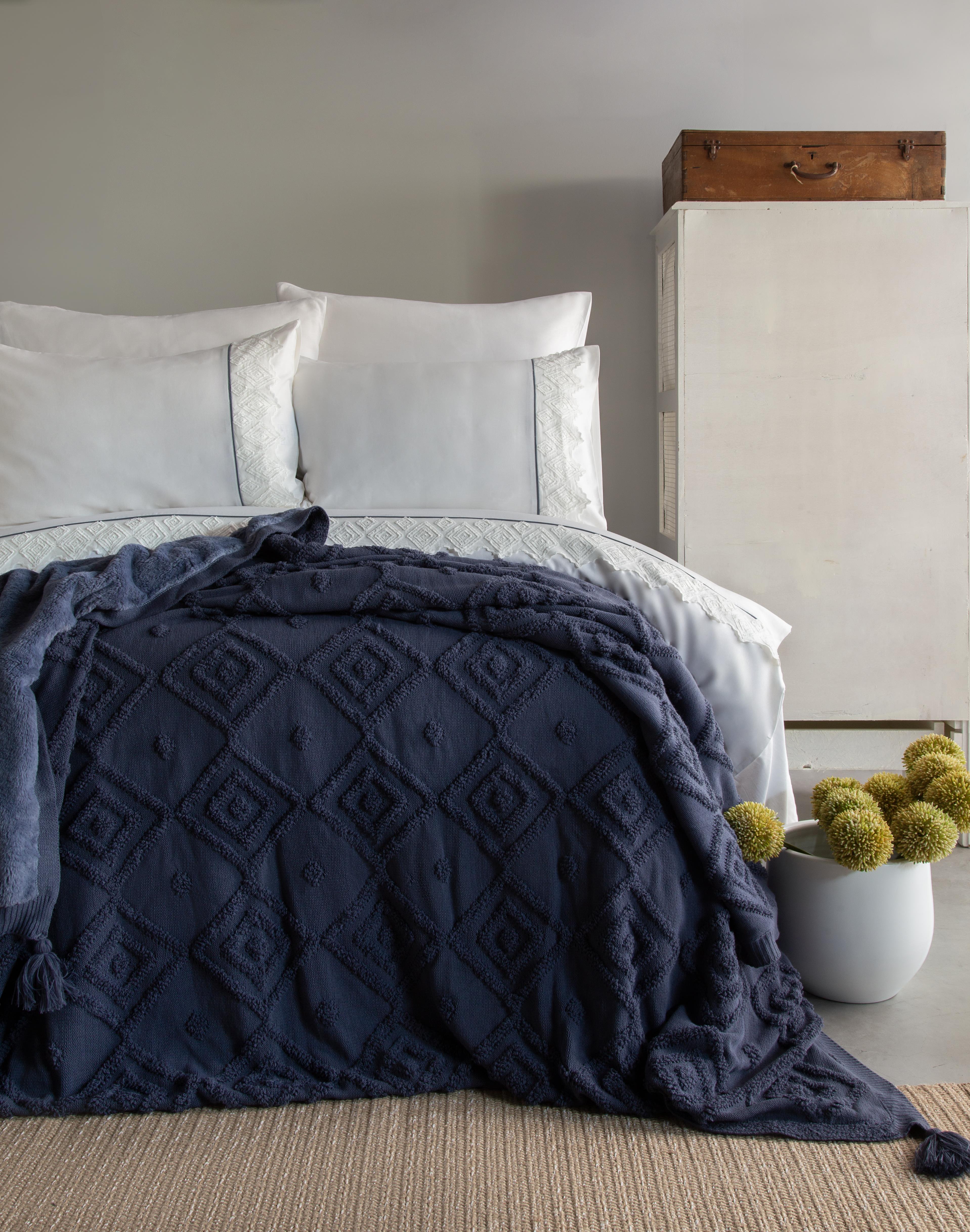 Çift Kişilik Porto İndigo Battaniyeli Nevresim Takımı