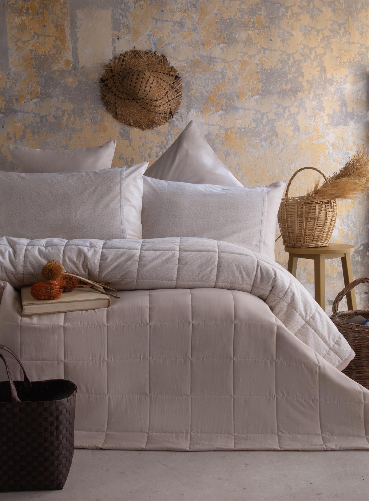Çift Kişilik İnes Bej Yatak Örtüsü Set