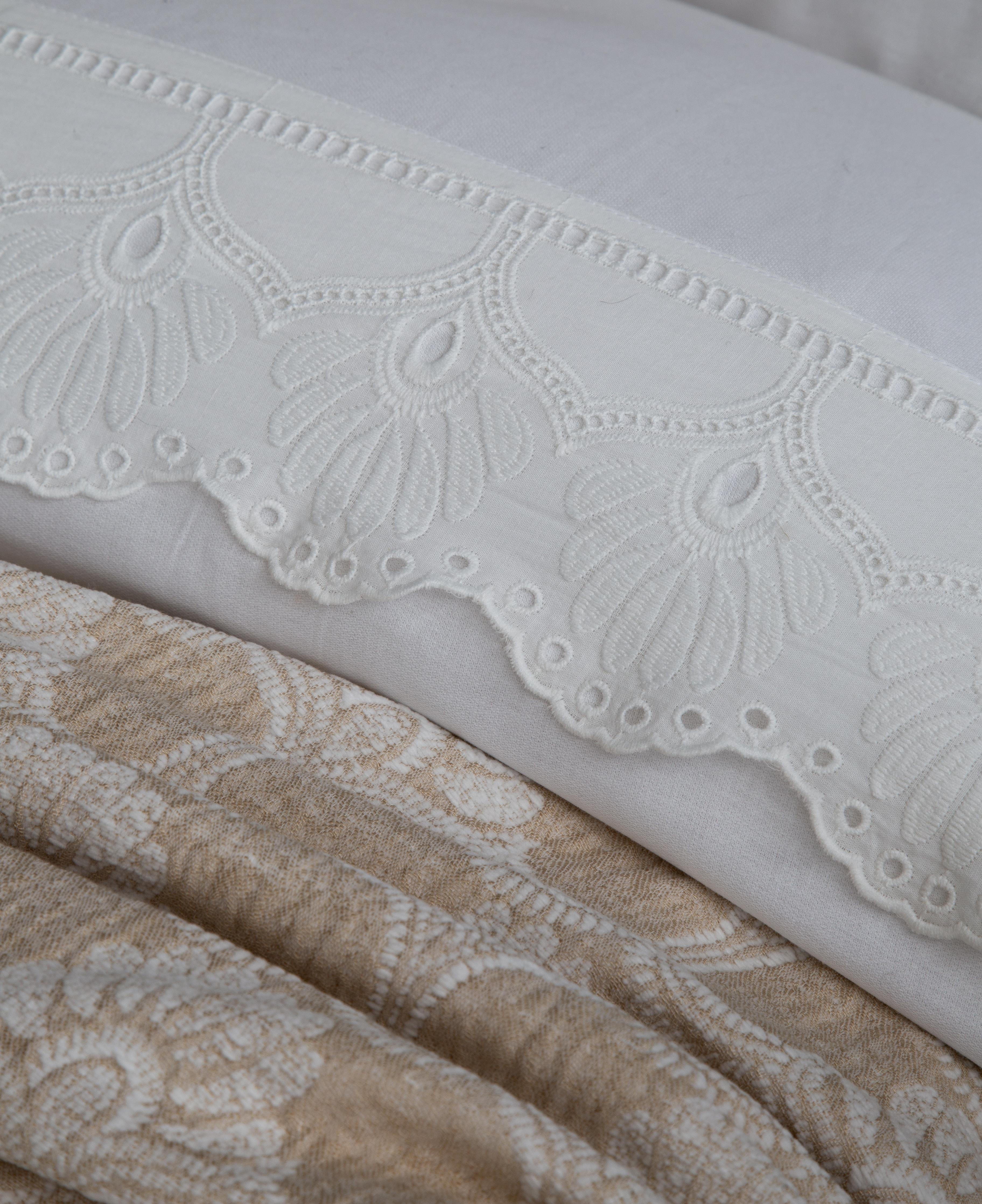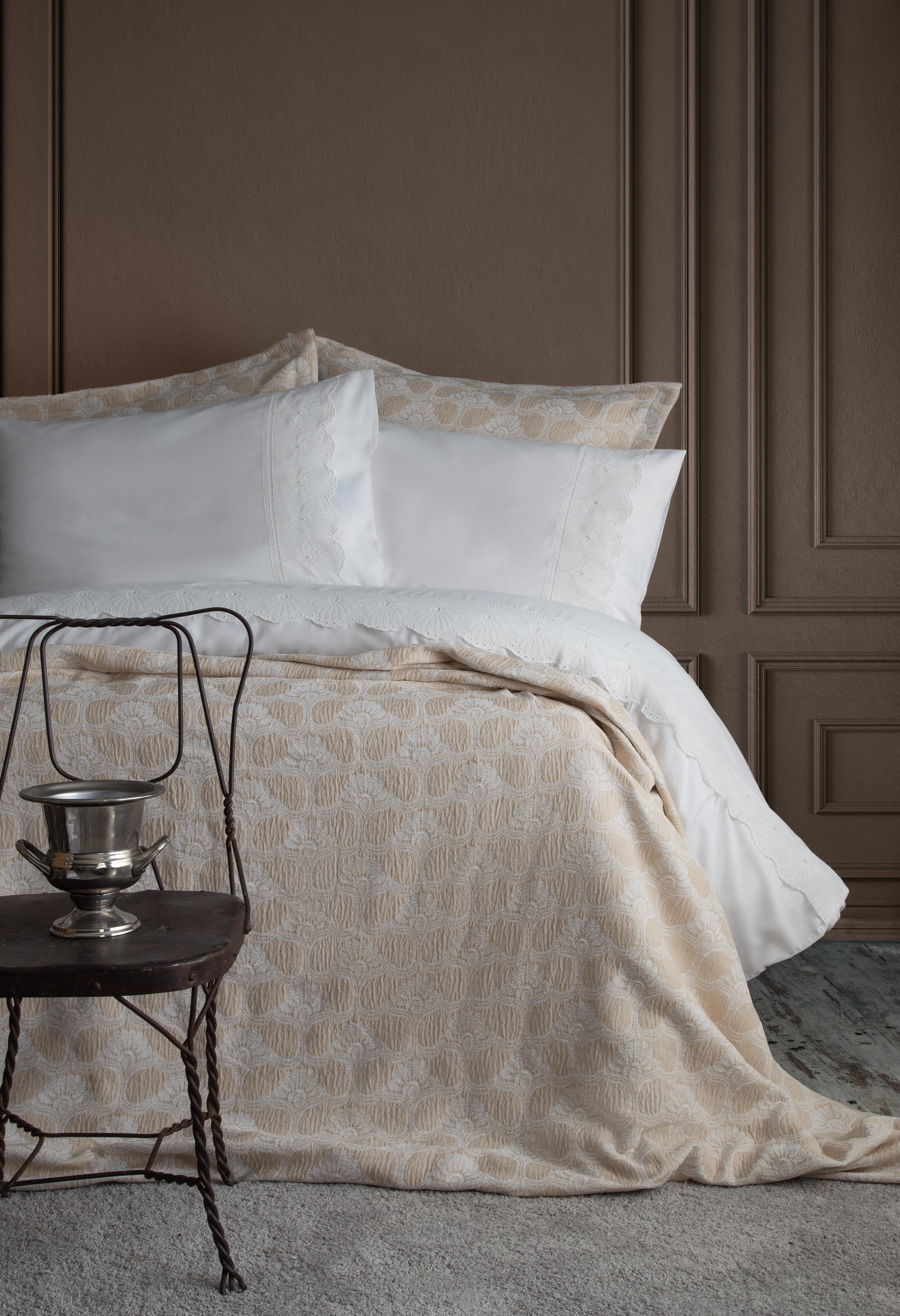 Çift Kişilik Neris Bej Nevresimli Yatak Örtülü Battaniyeli Set