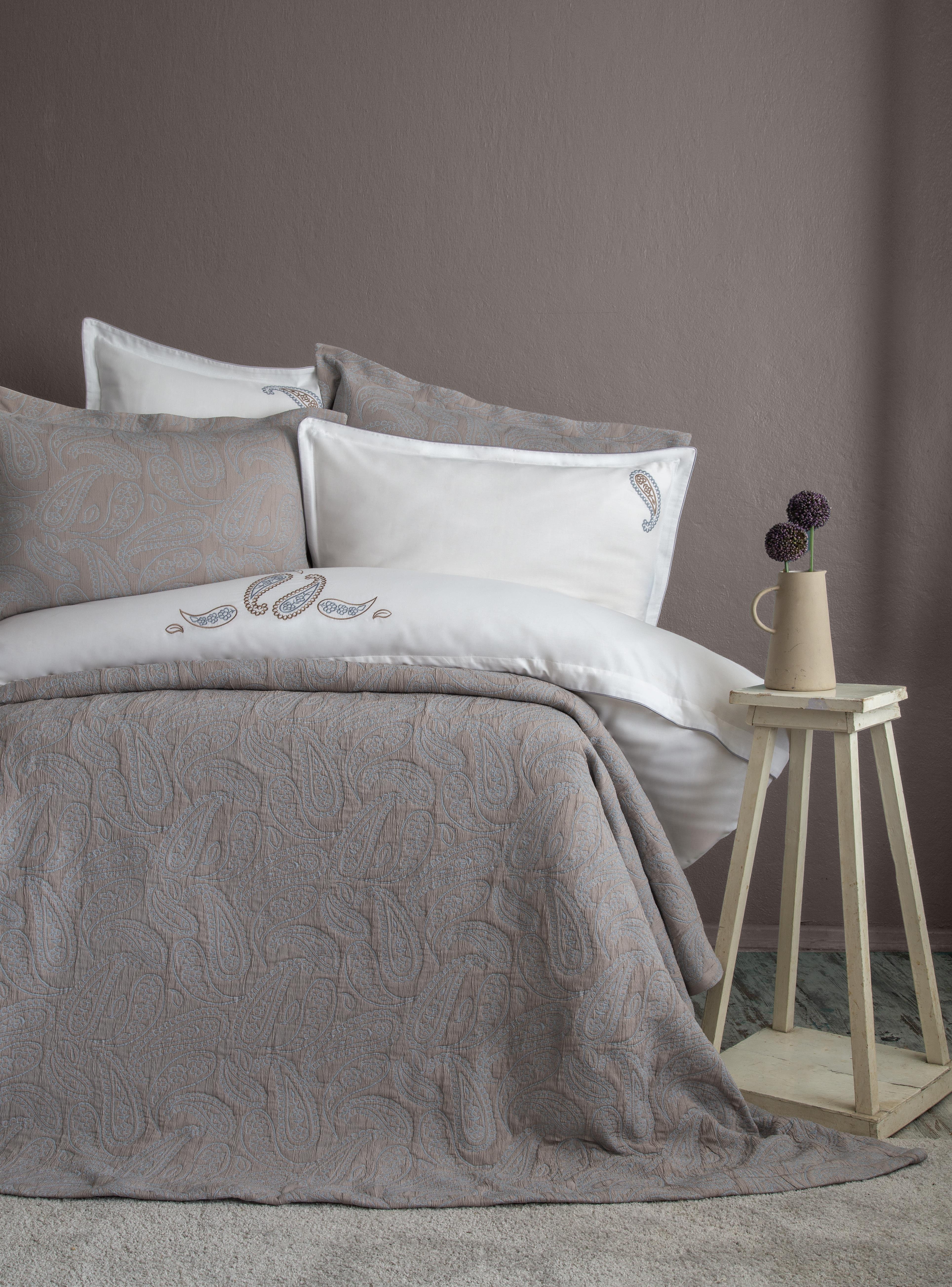 Çift Kişilik Briella Gri Yatak Örtülü Nevresim Set