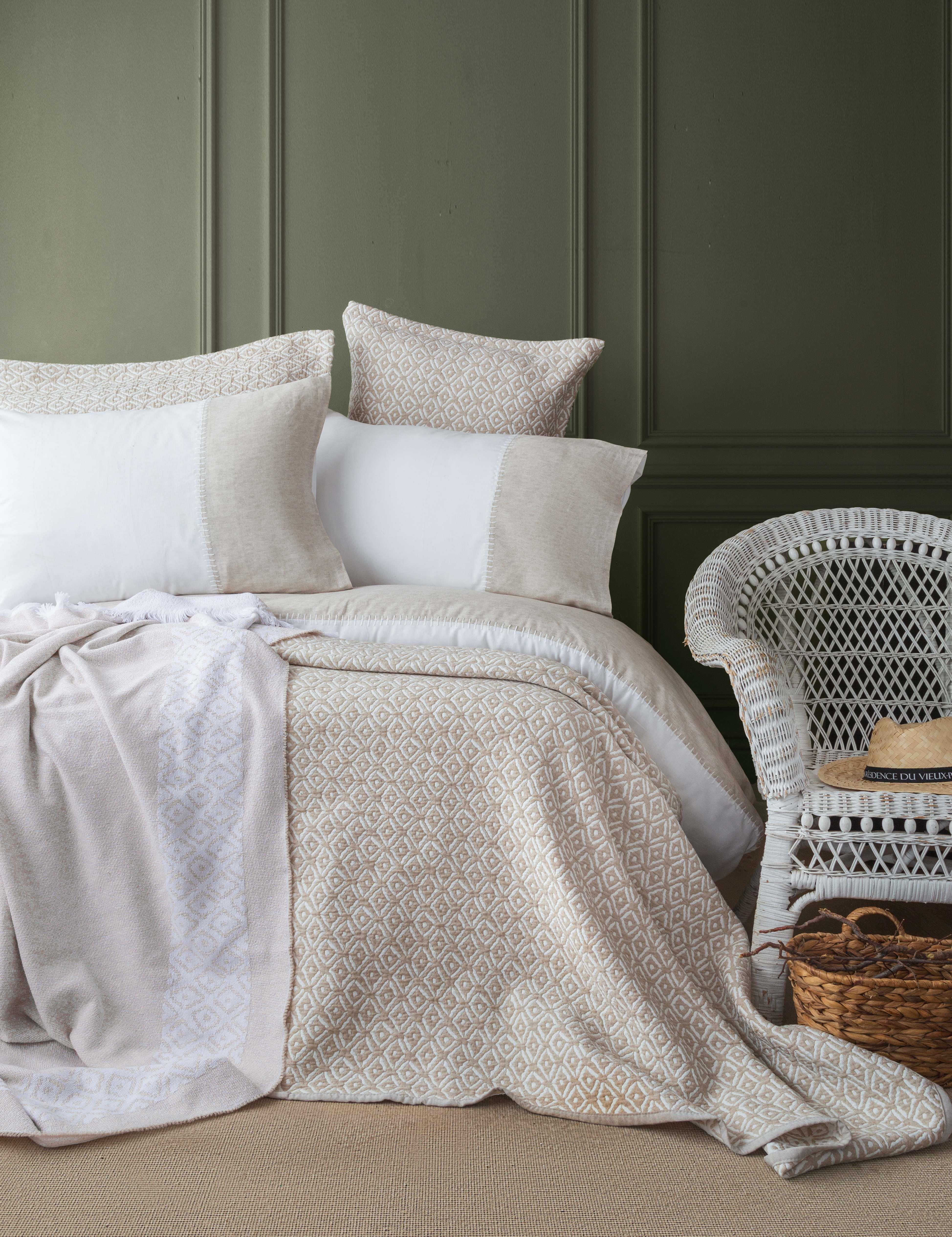 Çift Kişilik Omari Bej Timeless Yatak Örtüsü Nevresim Prime Set