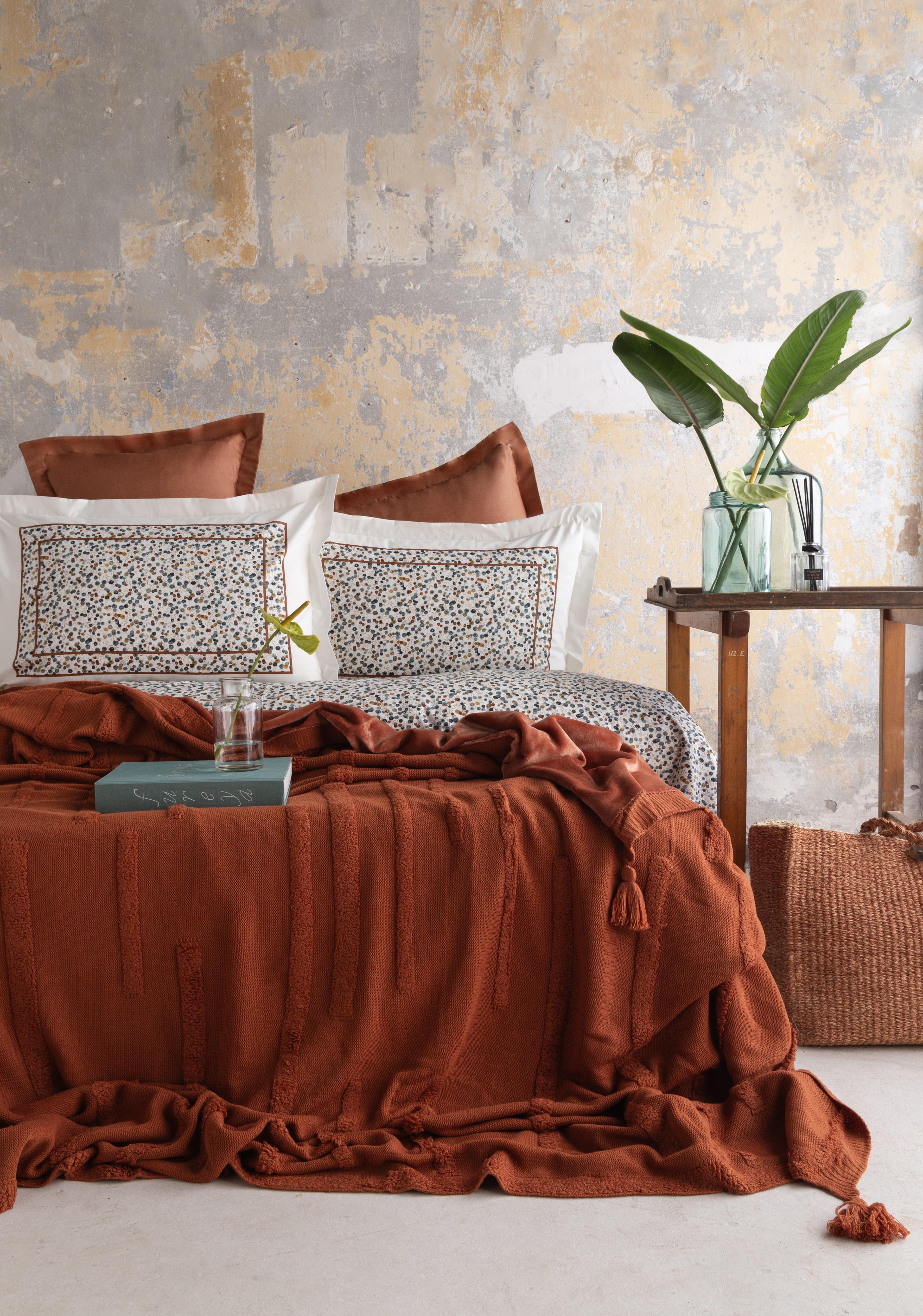 Çift Kişilik Stampino Terracotta Trikolu Battaniyeli Nevresim Takımı
