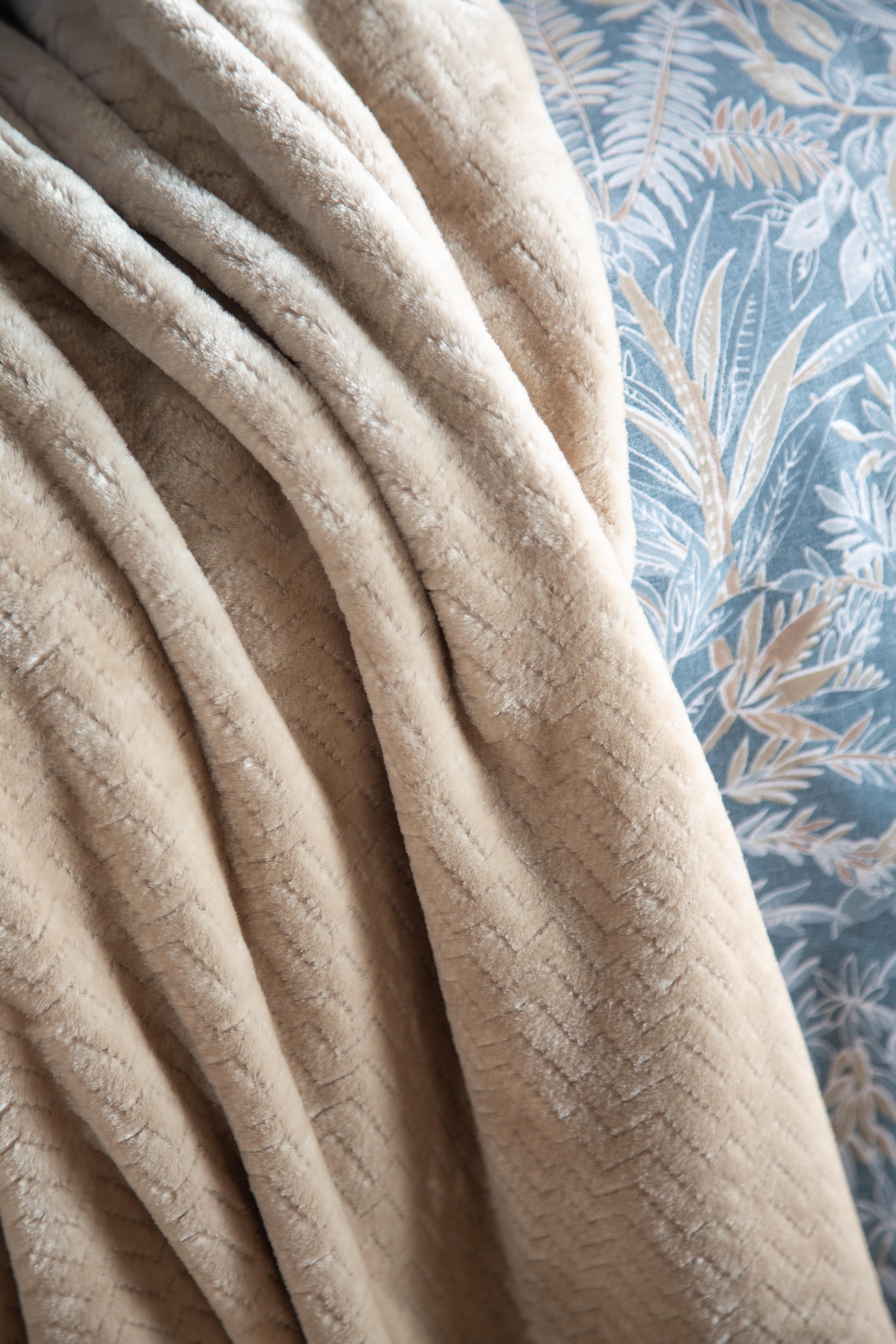Çift Kişilik Neris Bej Nevresimli Yatak Örtülü Battaniyeli Set
