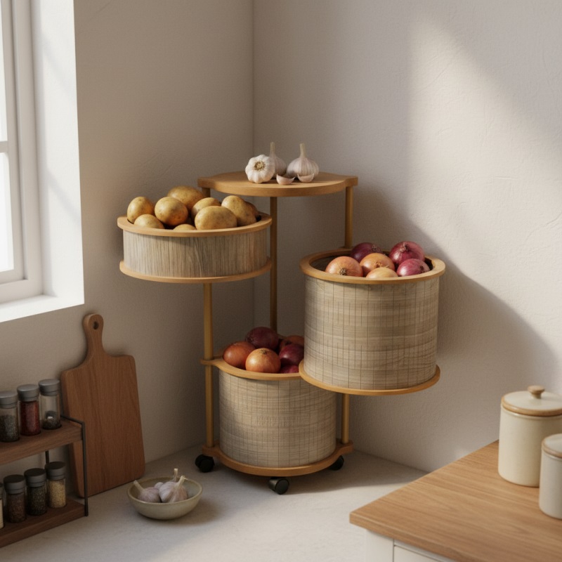 • Materyal: Ahsap materyali sayesinde dogal bir dokunusa sahip olan bu sebzelik, mutfak dekorasyonunuza sicaklik katar.