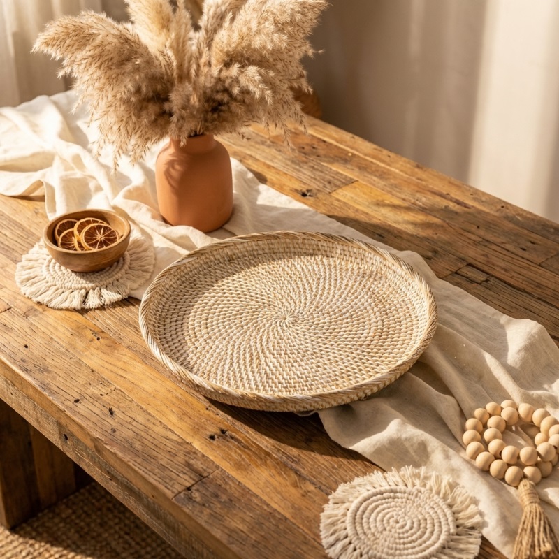 Luimera Küçük Hasir Yuvarlak Dekoratif Tabak Dk 23X23cm