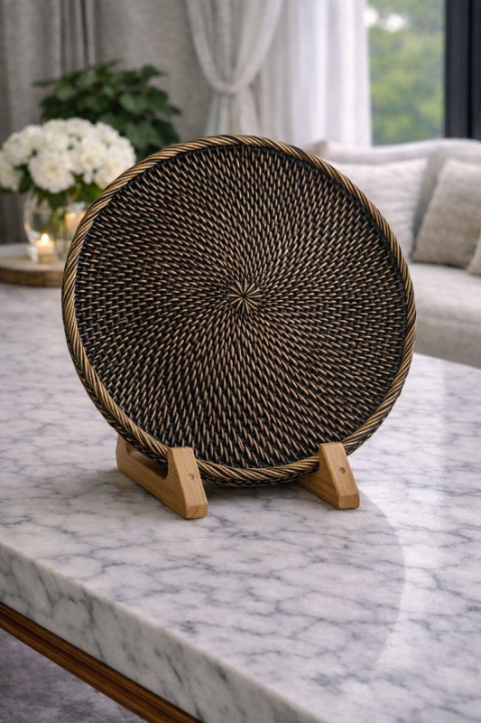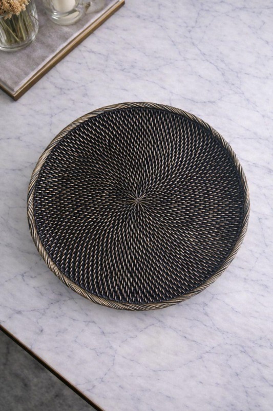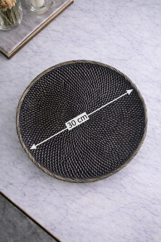 Luimera Büyük Hasir Yuvarlak Dekoratif Tabak Siyah 30X30cm