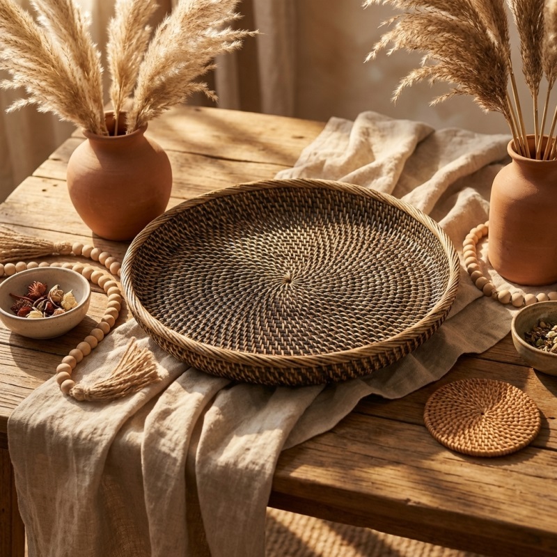 Luimera Küçük Hasir Yuvarlak Dekoratif Tabak Dk 23X23cm