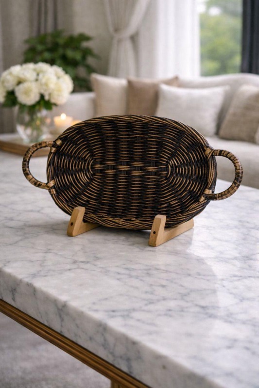 Luimera Küçük Hasir Tepsi Siyah 17X32cm