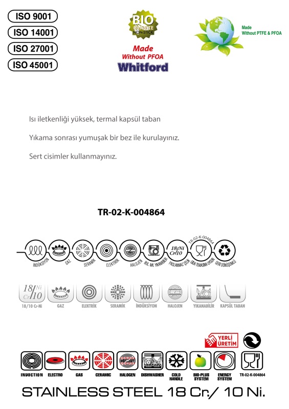 ocak tipleriyle tam uyumludur. Gazli, elektrikli, seramik ve halojen ocaklarda da yüksek verimle kullanilabilir.