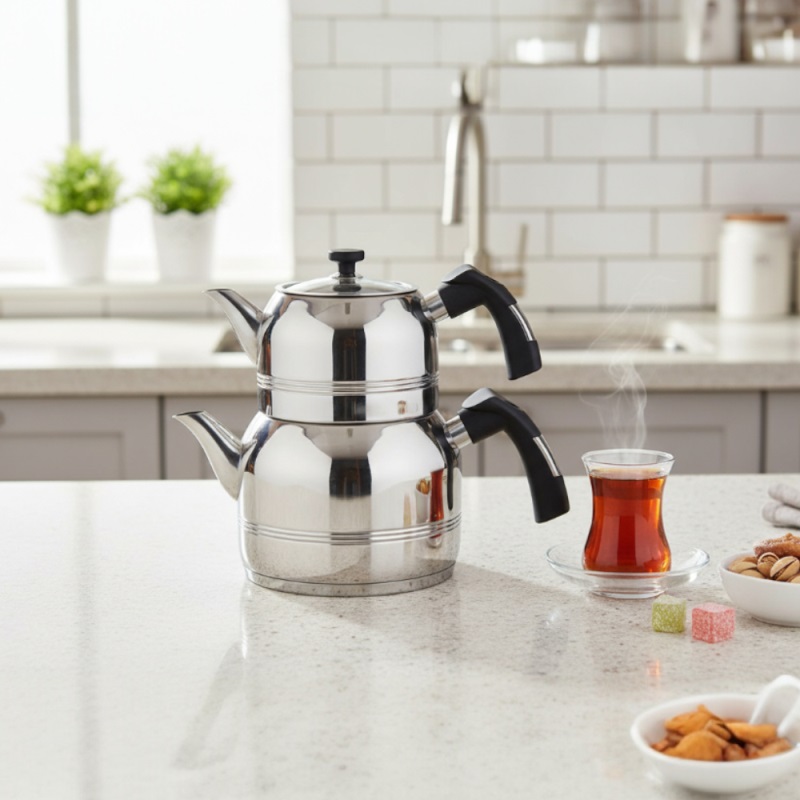 Parça Sayisi: 4 parçadan olusur: üst demlik, alt su haznesi ve bunlara ait kapaklar.