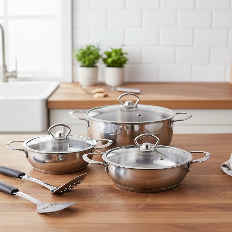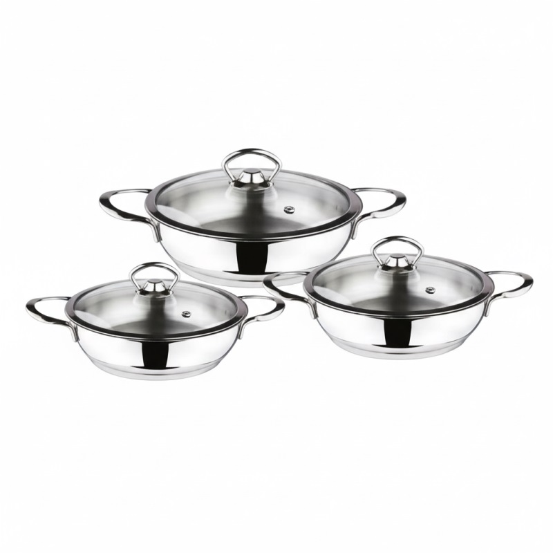sahip 3 çelik kap, gövde rengi kulp 3 adet cam kapaktan olusmustur.