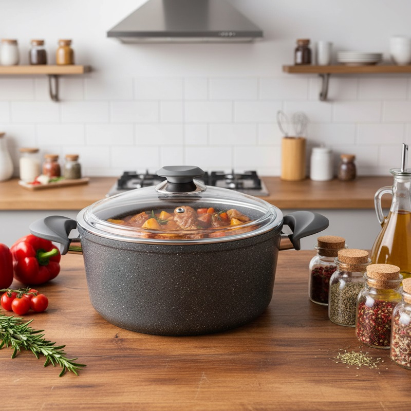 • Ideal Boyut ve Hacim: 26 cm çapinda, 12,5 cm derinliginde ve 5,5 litre hacminde ve 4 mm kalinliginda bio granit tenceresi.