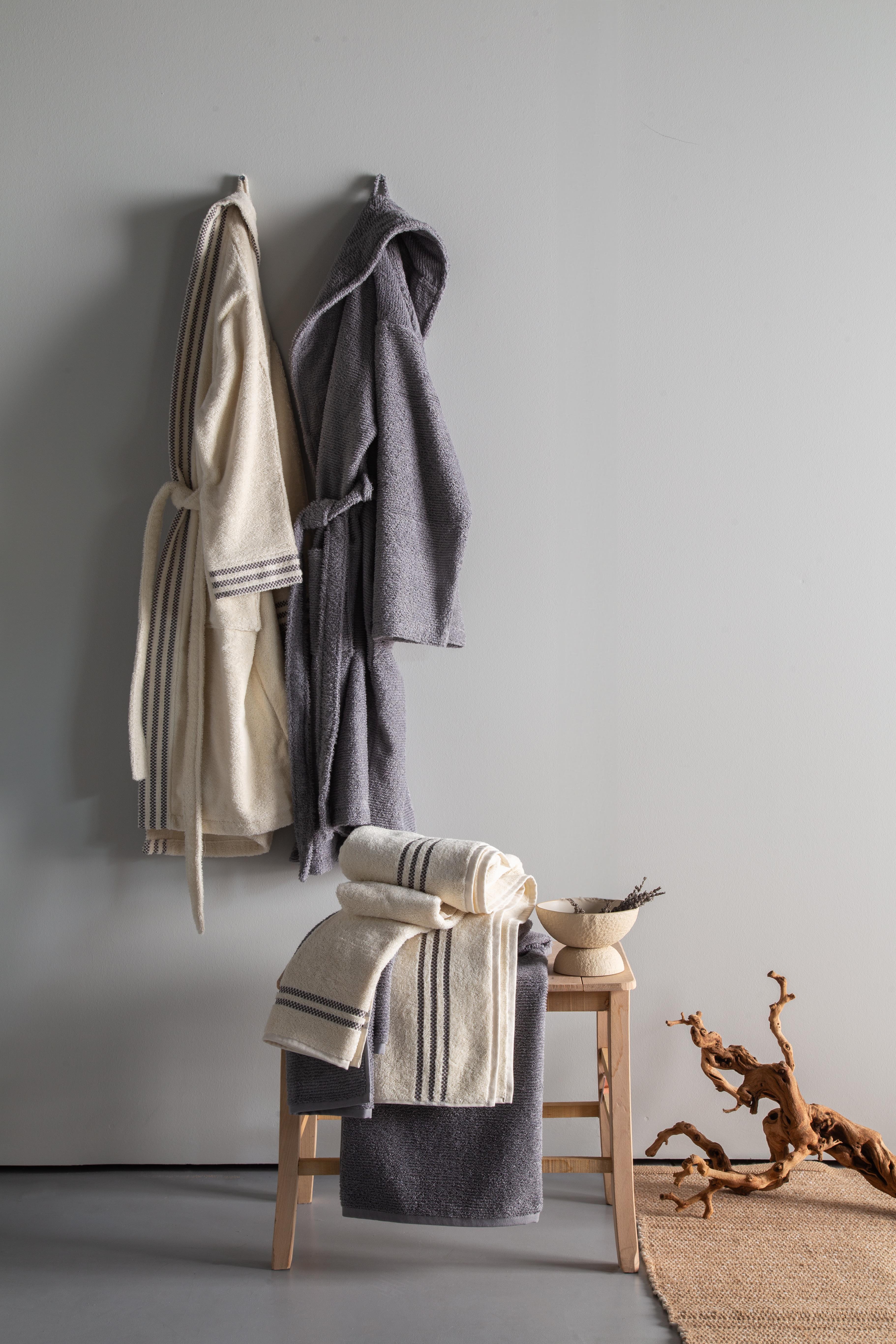 Penye Modeo Bornoz Antrasit/Ekru Aile Seti
