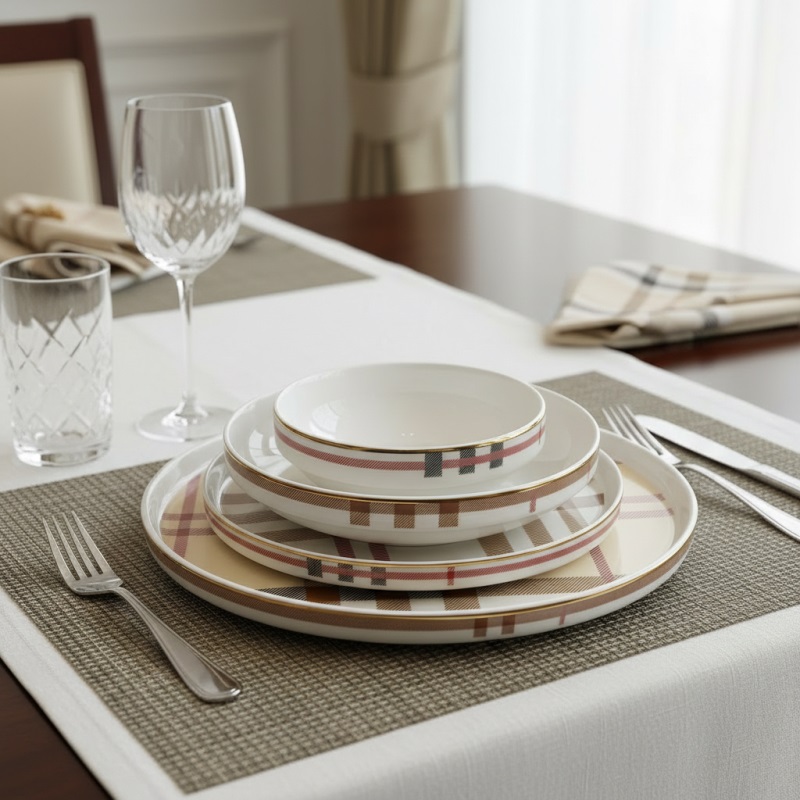 Pink&More Ekose 6 Kisilik 24 Parça Yemek Takimi
